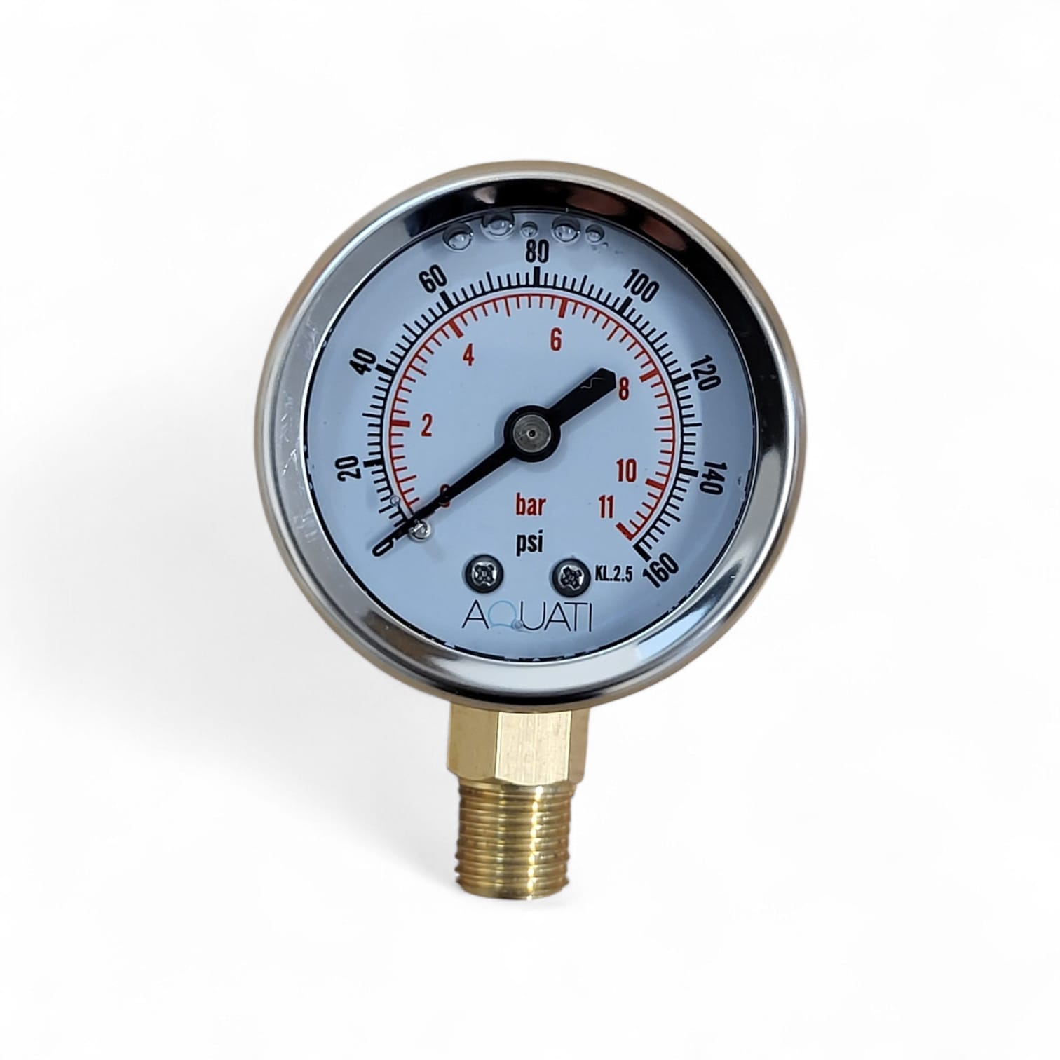 This high-quality oil filled radial pressure gauge is designed for accurate and stable pressure monitoring in reverse osmosis (RO) systems, water filters, and other fluid installations. With a measuring range of 0–11 bar (0–160 PSI) and a standard 1/4″ NPT connection, it provides reliable readings of water pressure at the membrane inlet, helping you monitor system performance and determine the right time to replace pre-filters.